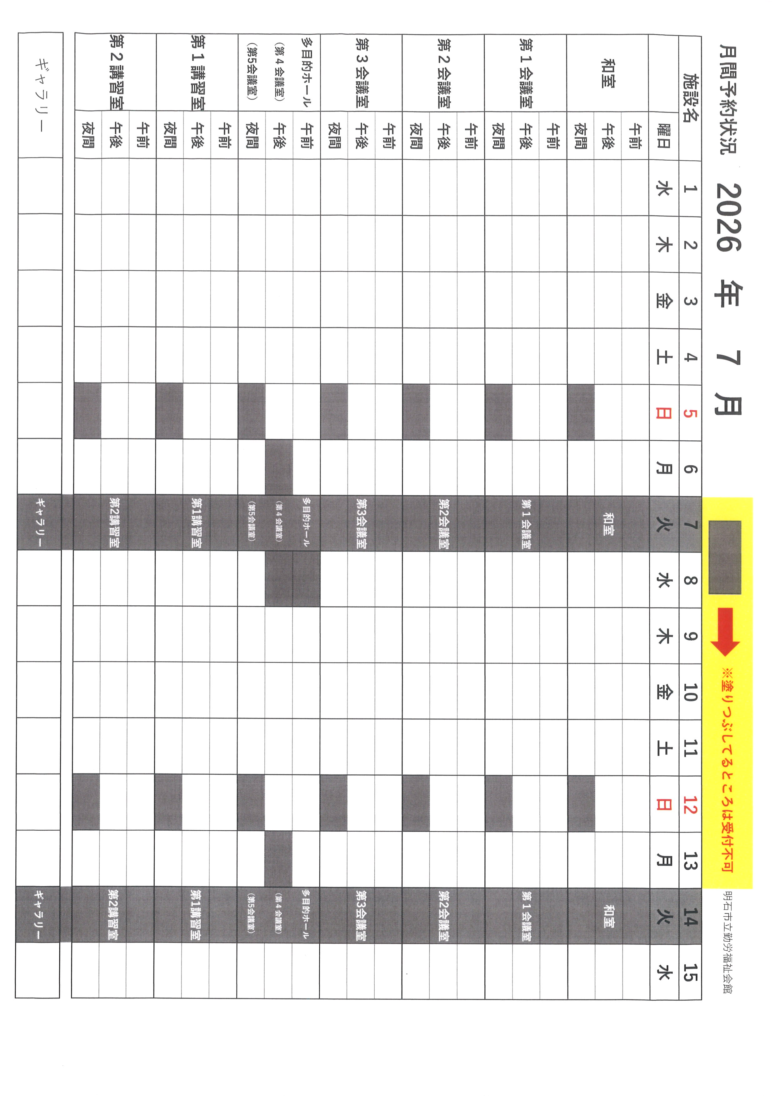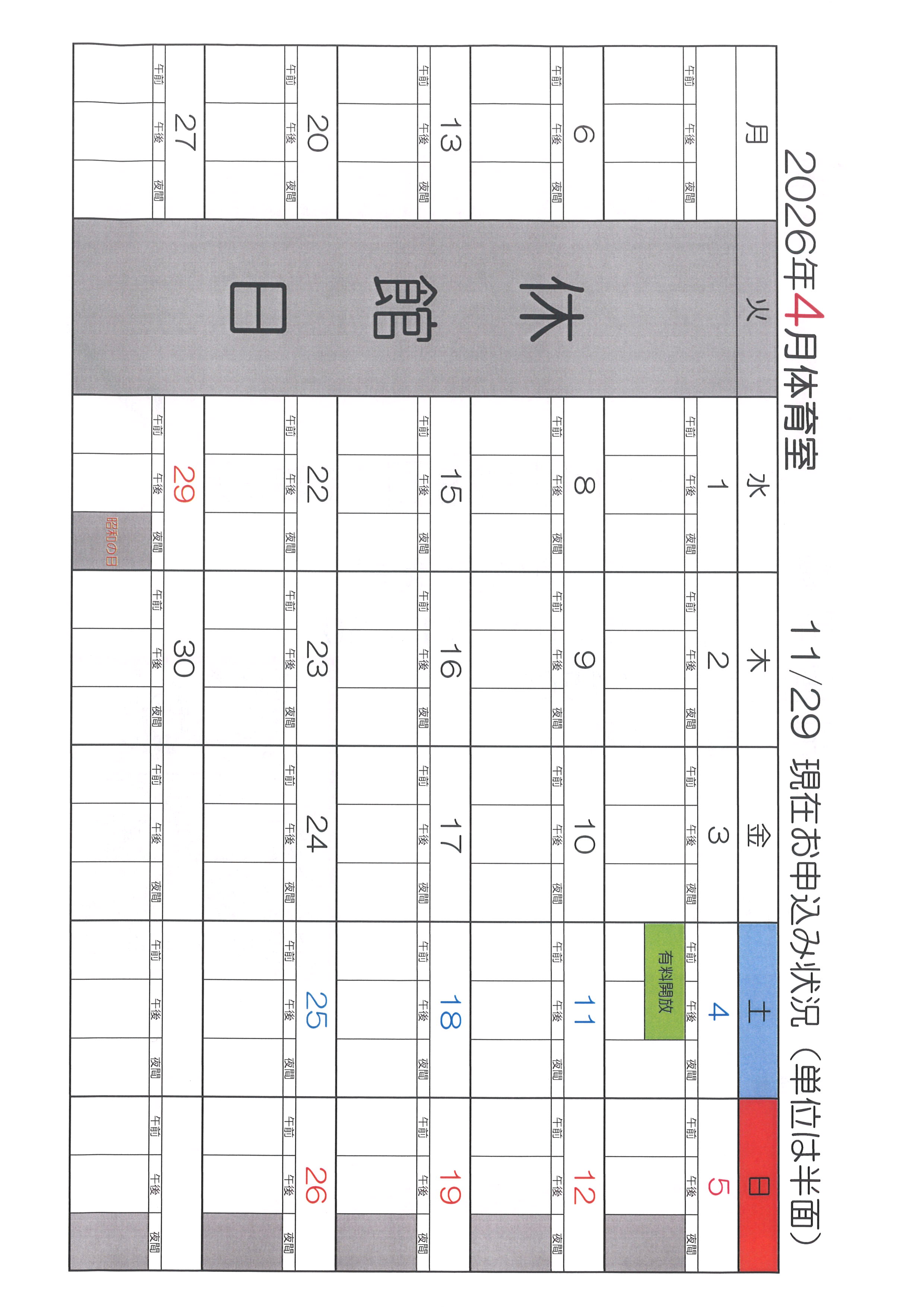 2026年7月会議室・2026年4月体育室の抽選申込カレンダーを更新しました。