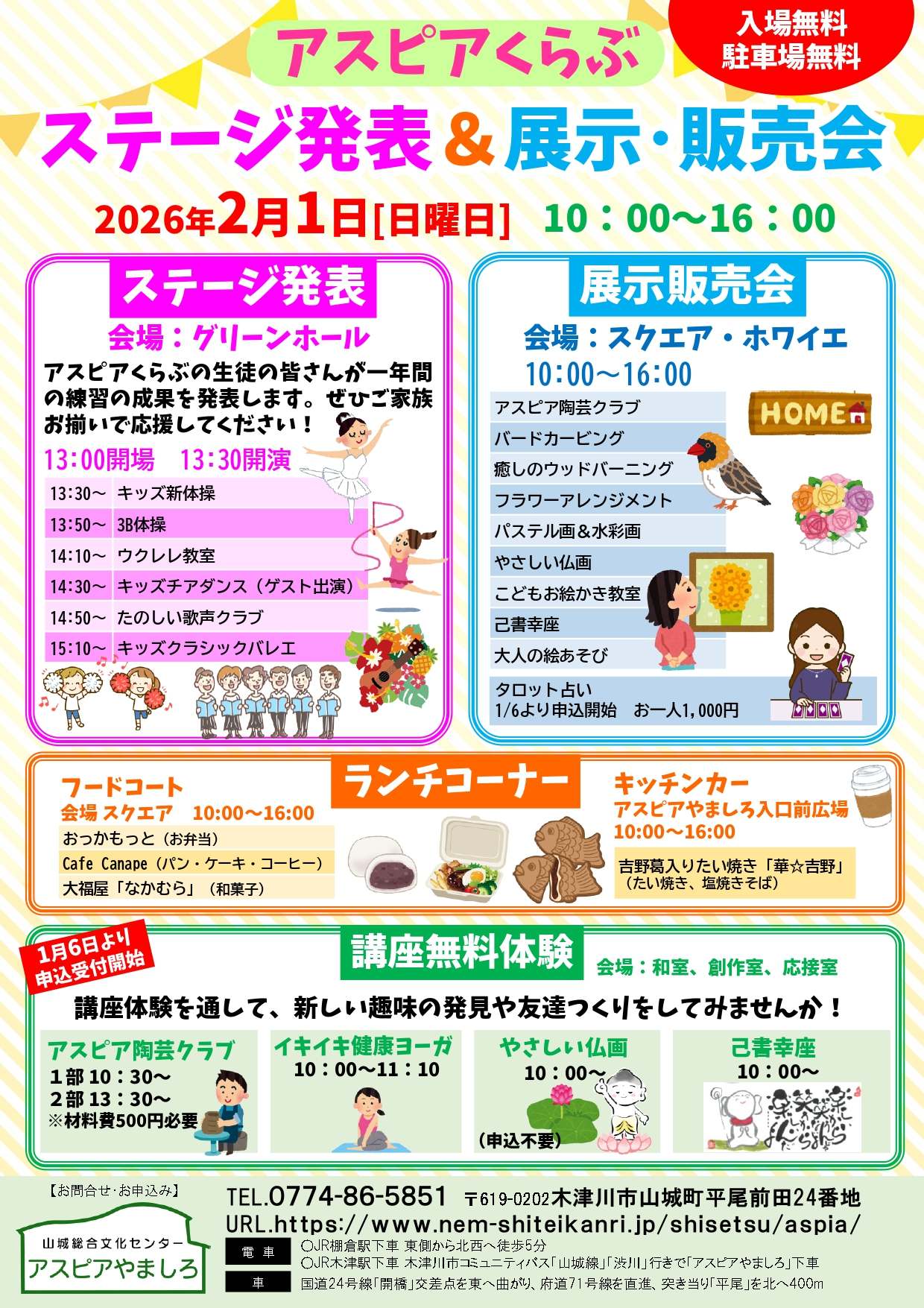 2026年2月1日(日) アスピアくらぶ ステージ発表&展示・販売会