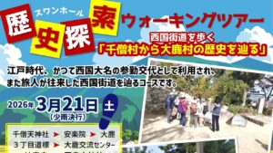 歴史探索ウォーキングツアー 西国街道を歩く! 「千僧村から大鹿村の歴史を辿る」 江戸時代、かつて西国大名の参勤交代として利用され、 また旅人が往来した西国街道を辿るコースです。 約3k […]