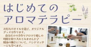 【はじめてのアロマテラピー】 アロマを使ってオリジナルグッズを作ります。10月から第3期がスタートします。 ただ作るだけでなく、毎回異なるアロマオイルを使用し、それぞれどのような効果があるのかを学びます。 アロマの香りで […]