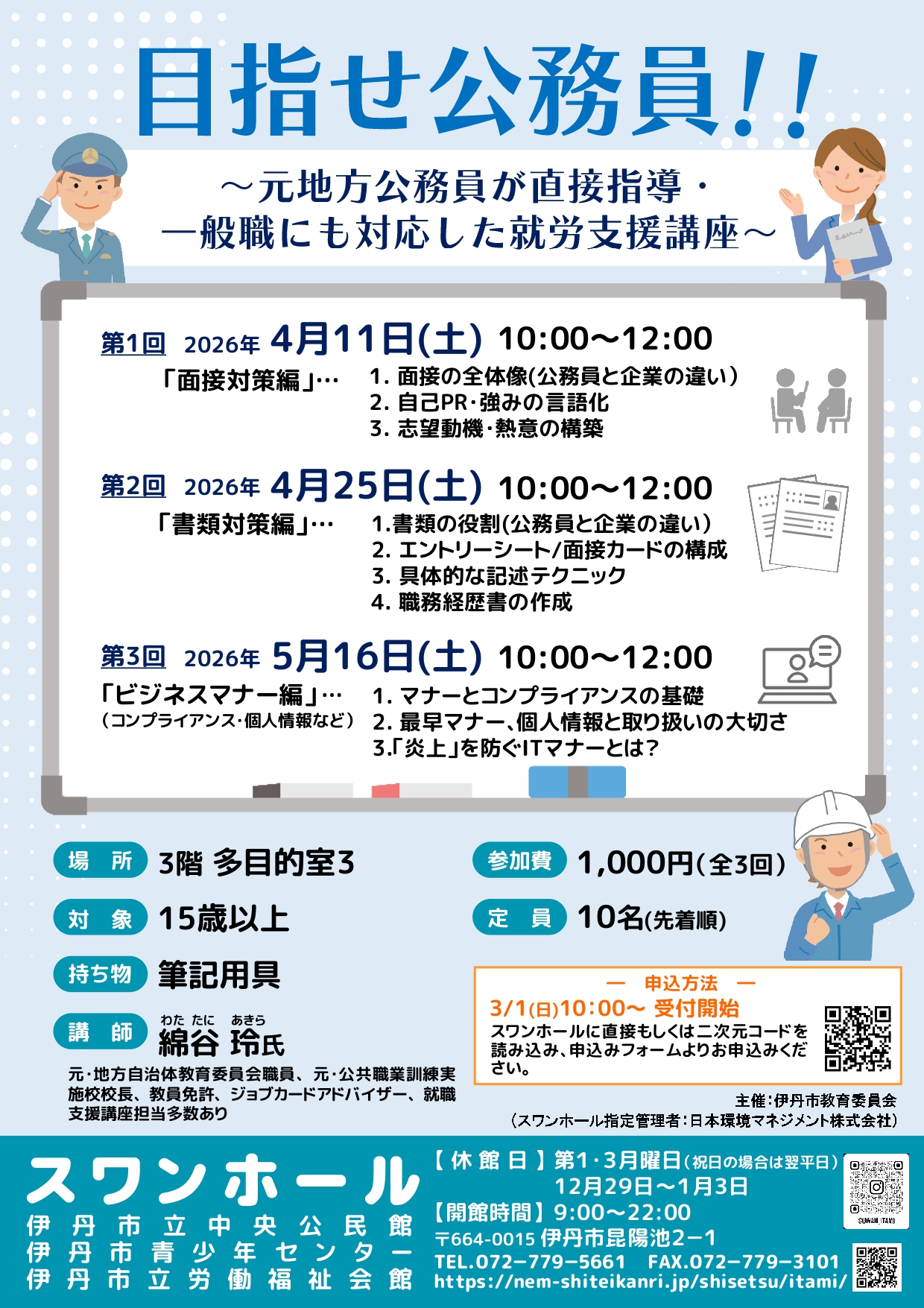 参加費:1,000円(全3回)