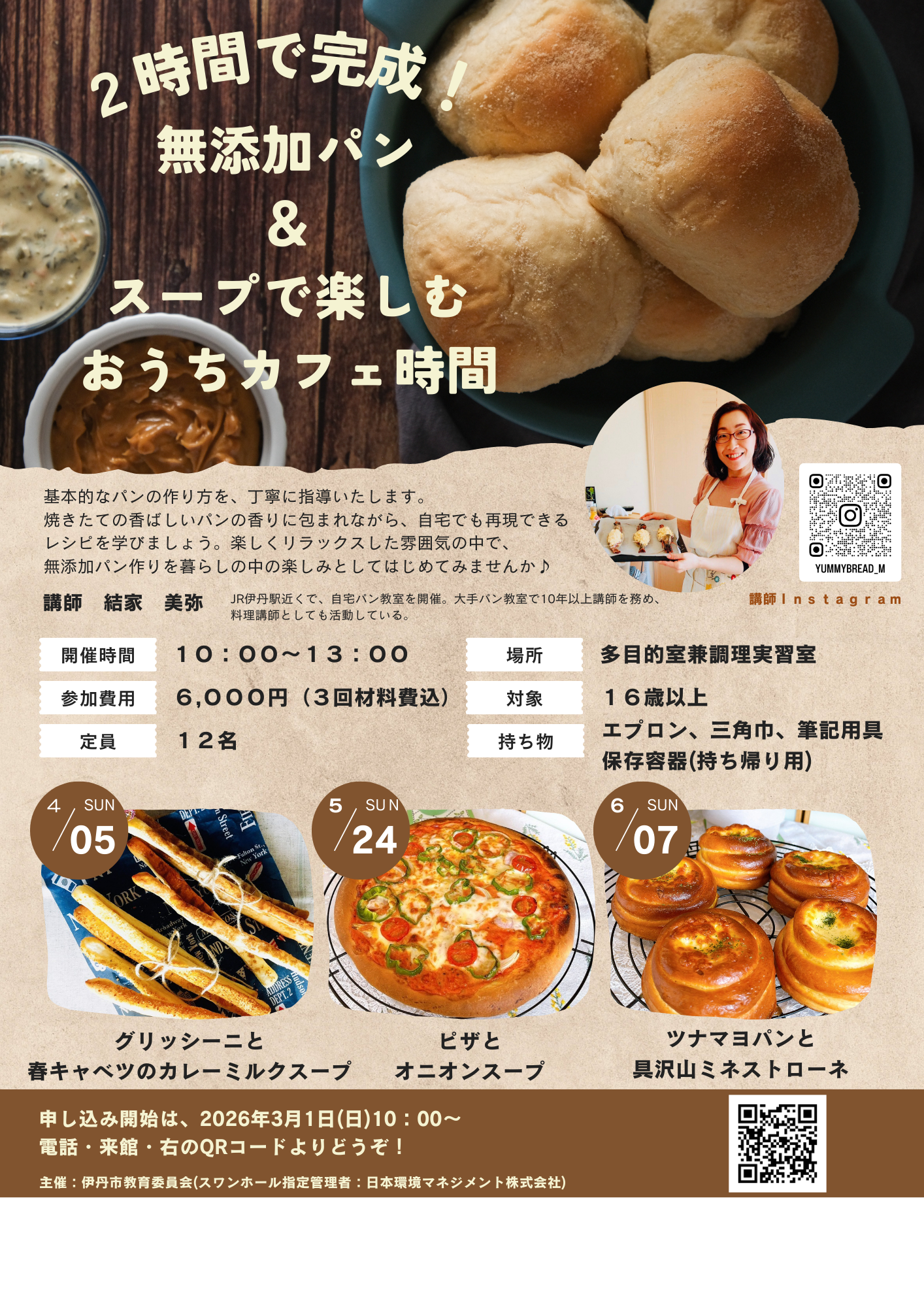【2時間で完成!無添加パン&スープで楽しむおうちカフェ時間】