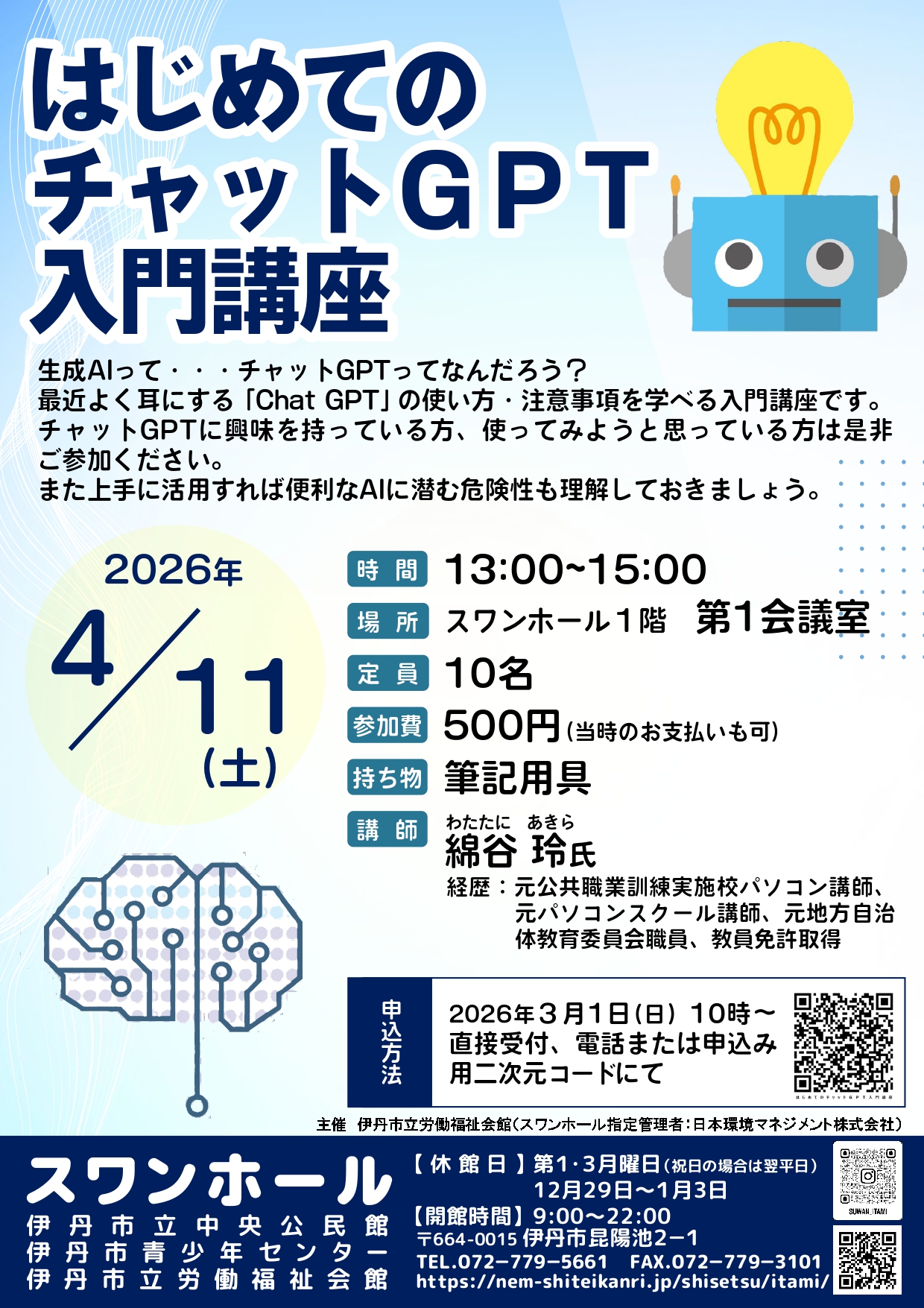 日時 : 2026年4月11日(土) 13:00~15:00