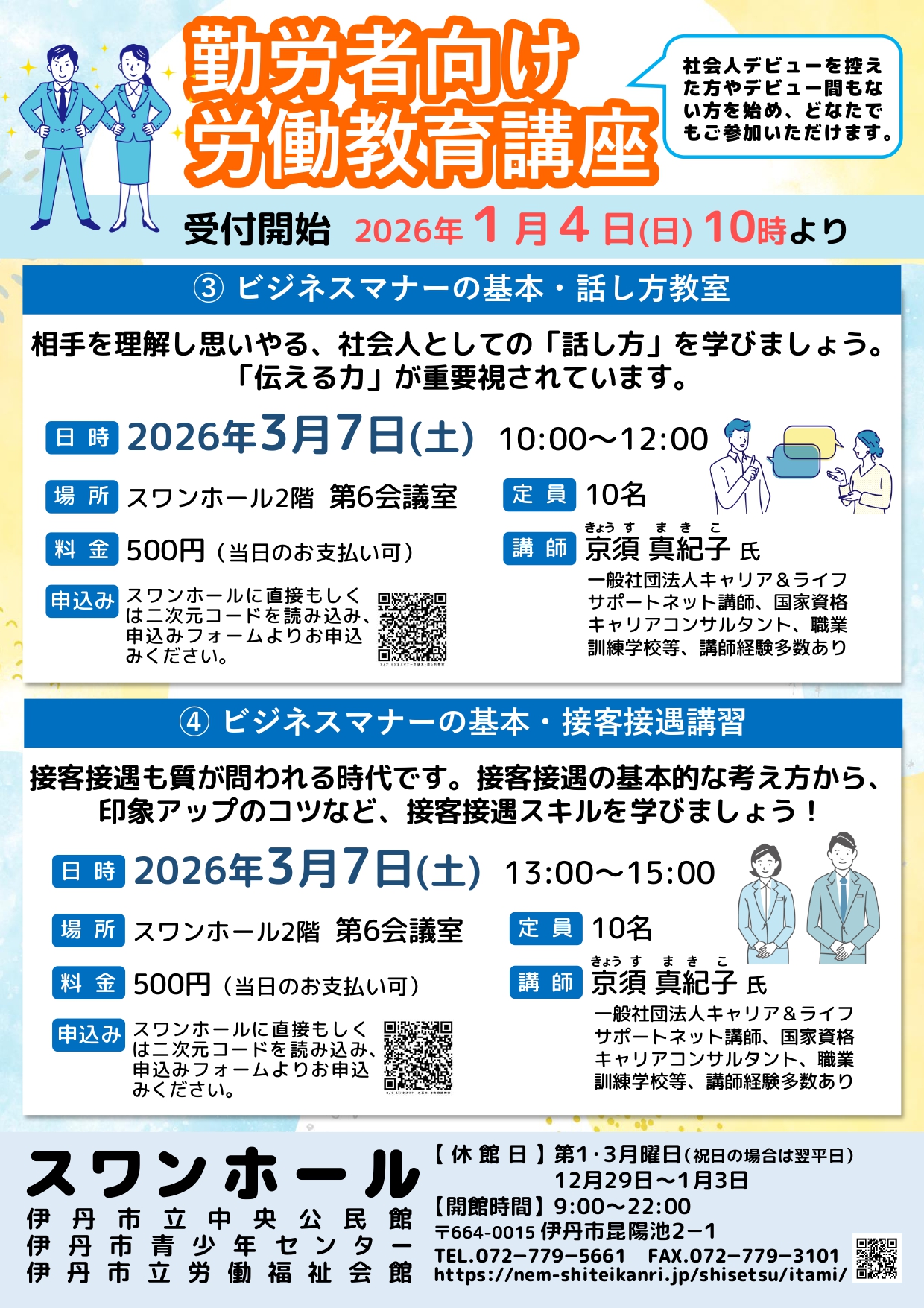 各講座、受付開始は2026年1月4日10時より