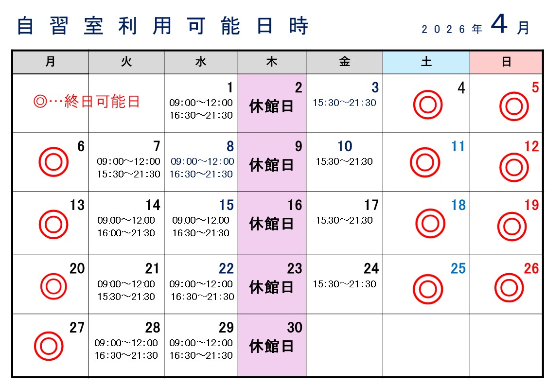 自習室 4月予定表