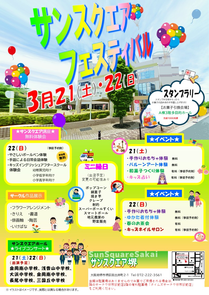 〜サンスクエアフェスティバルのご案内〜開催日:3月21日(土)、22日(日)10:00〜16:00