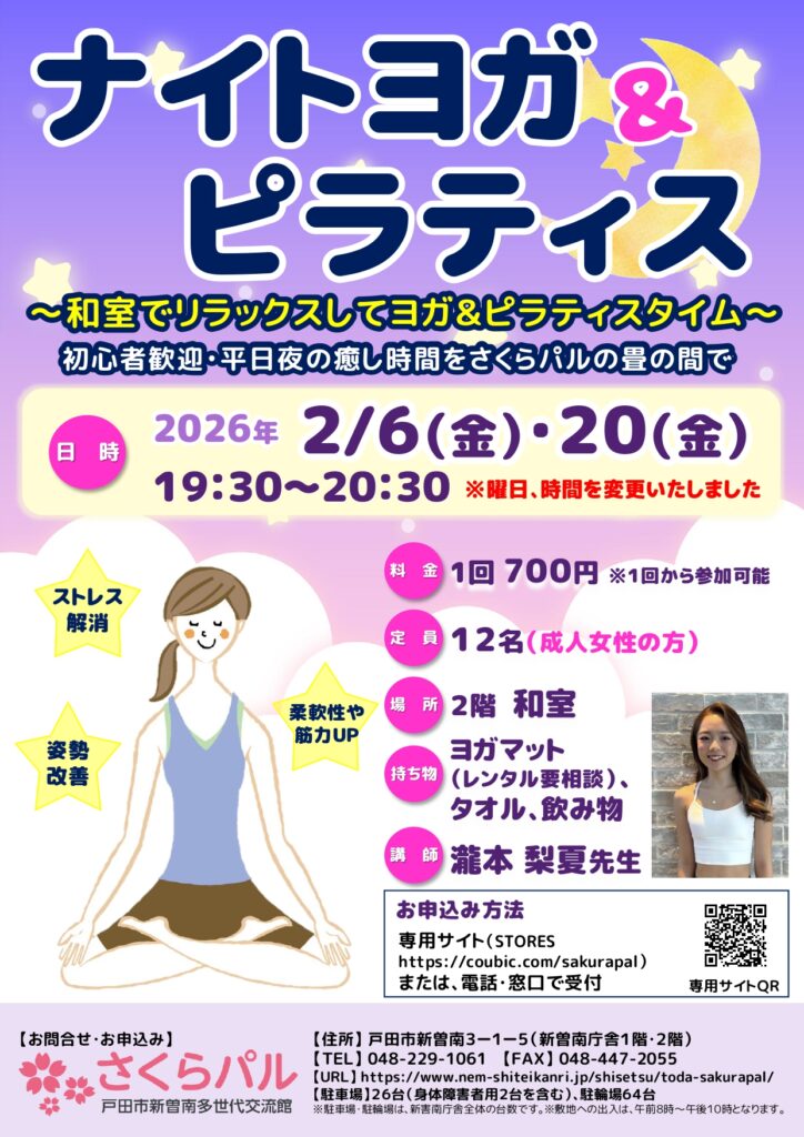 ご好評の「ナイトヨガ&ピラティス」の11月定期教室のご案内です。