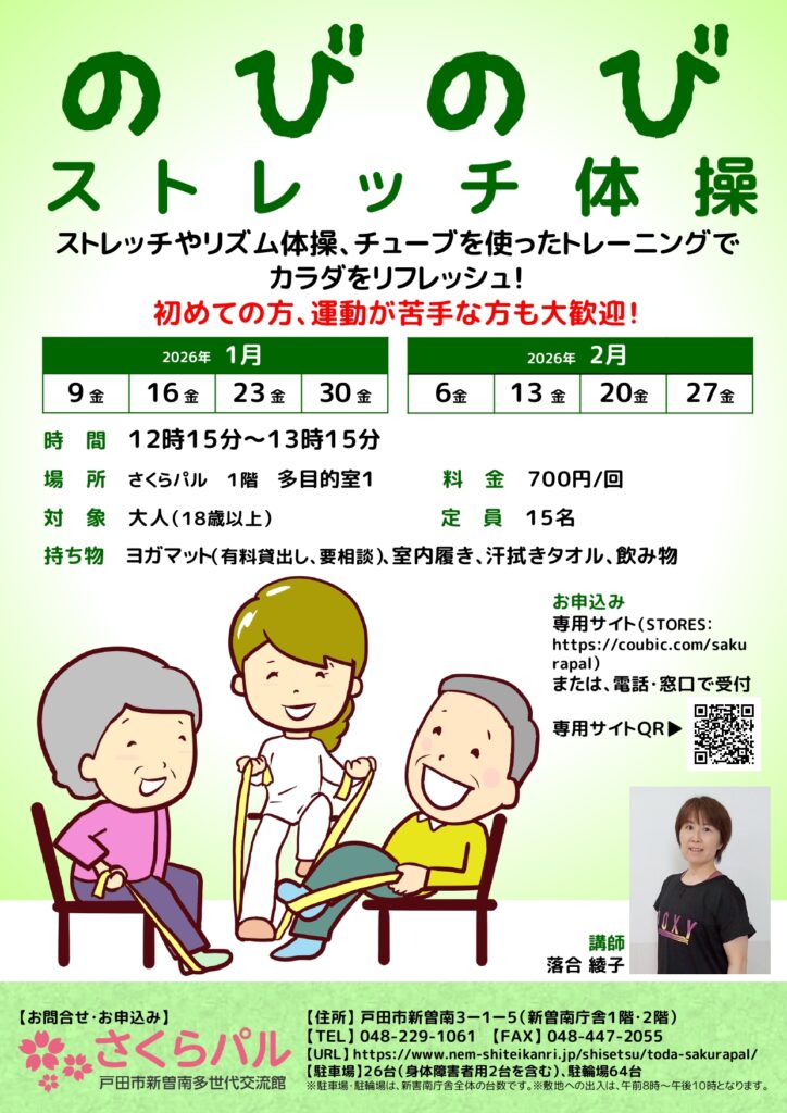 定期教室「のびのびストレッチ体操」2026年1月・2月開催日