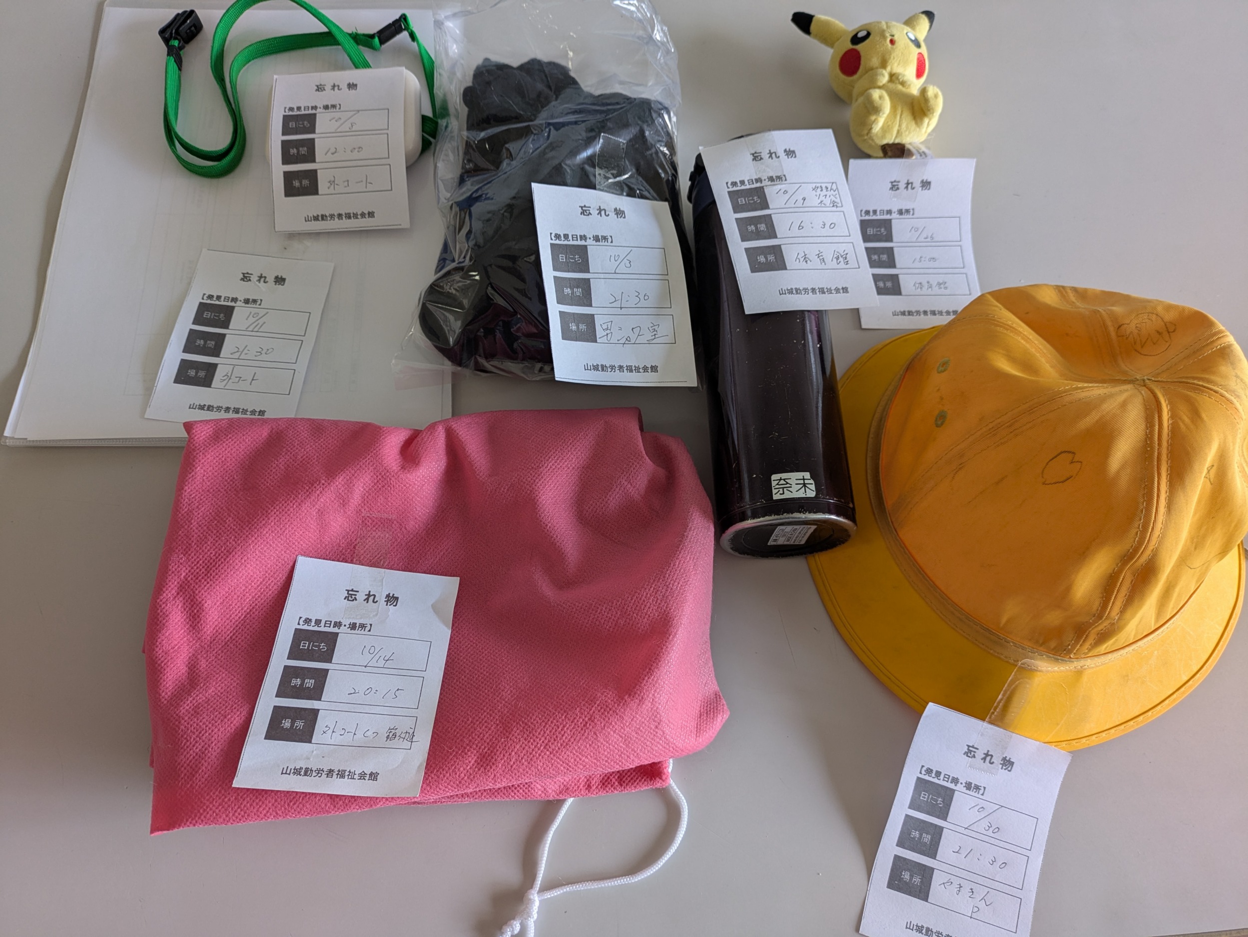 今月、先月、先々月の忘れ物を談話室ショーケースにお預かりしております。