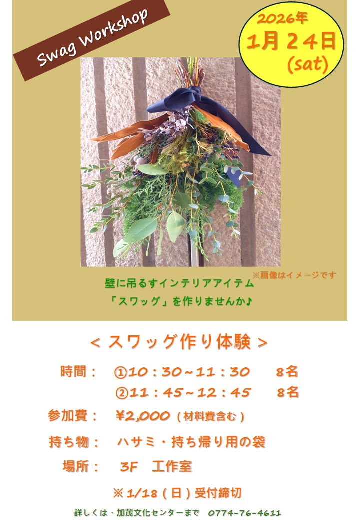 ワンディ講座 スワッグ作り体験 2026/1/24