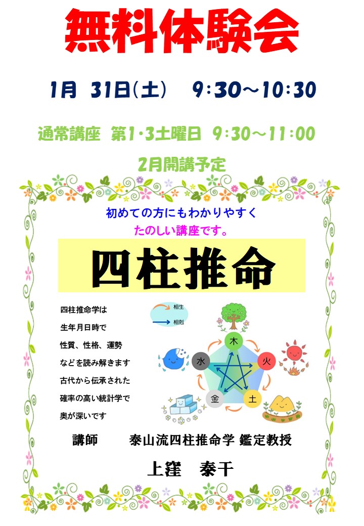 あじさい講座「四柱推命」無料体験会 - 2026/1/31