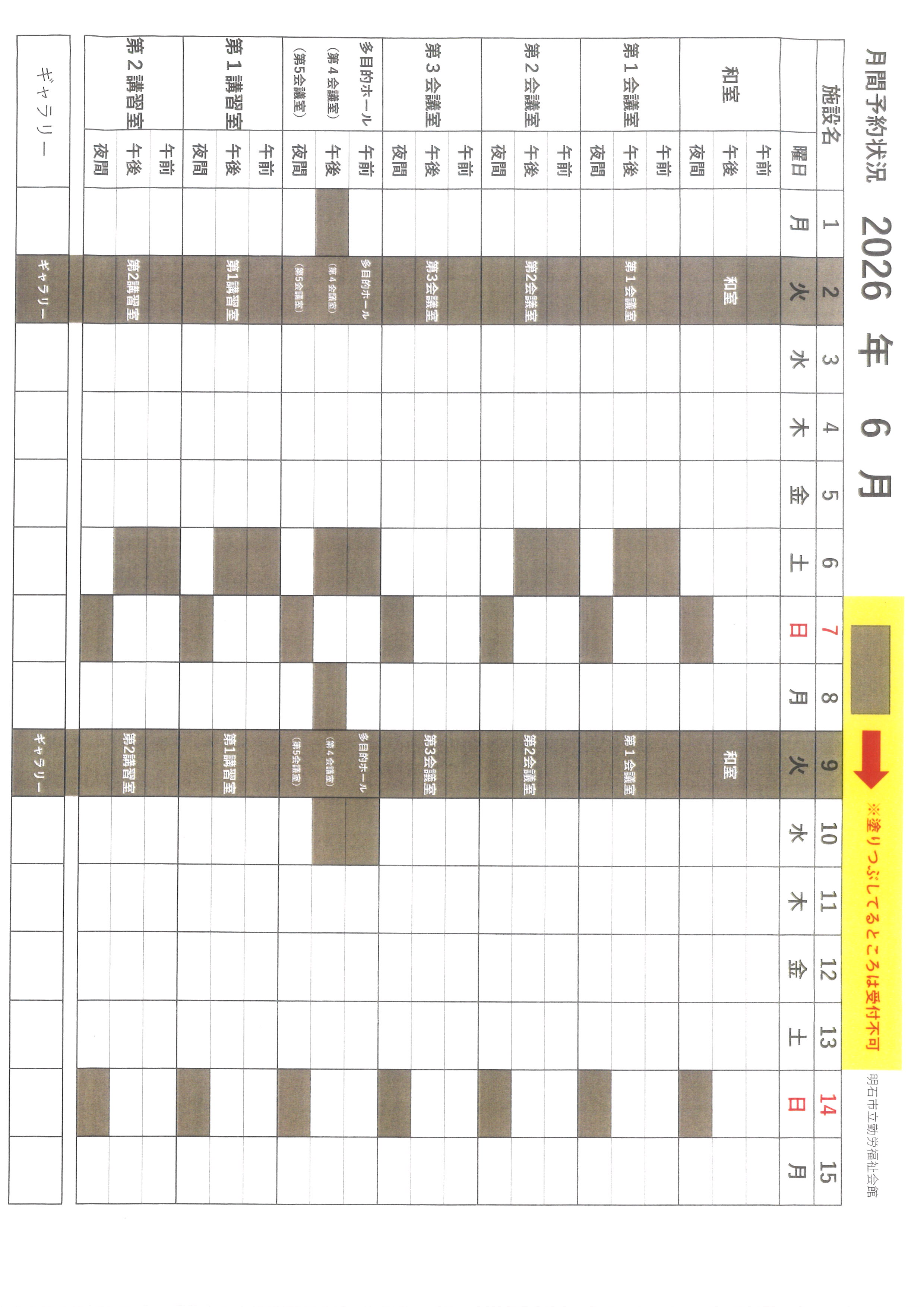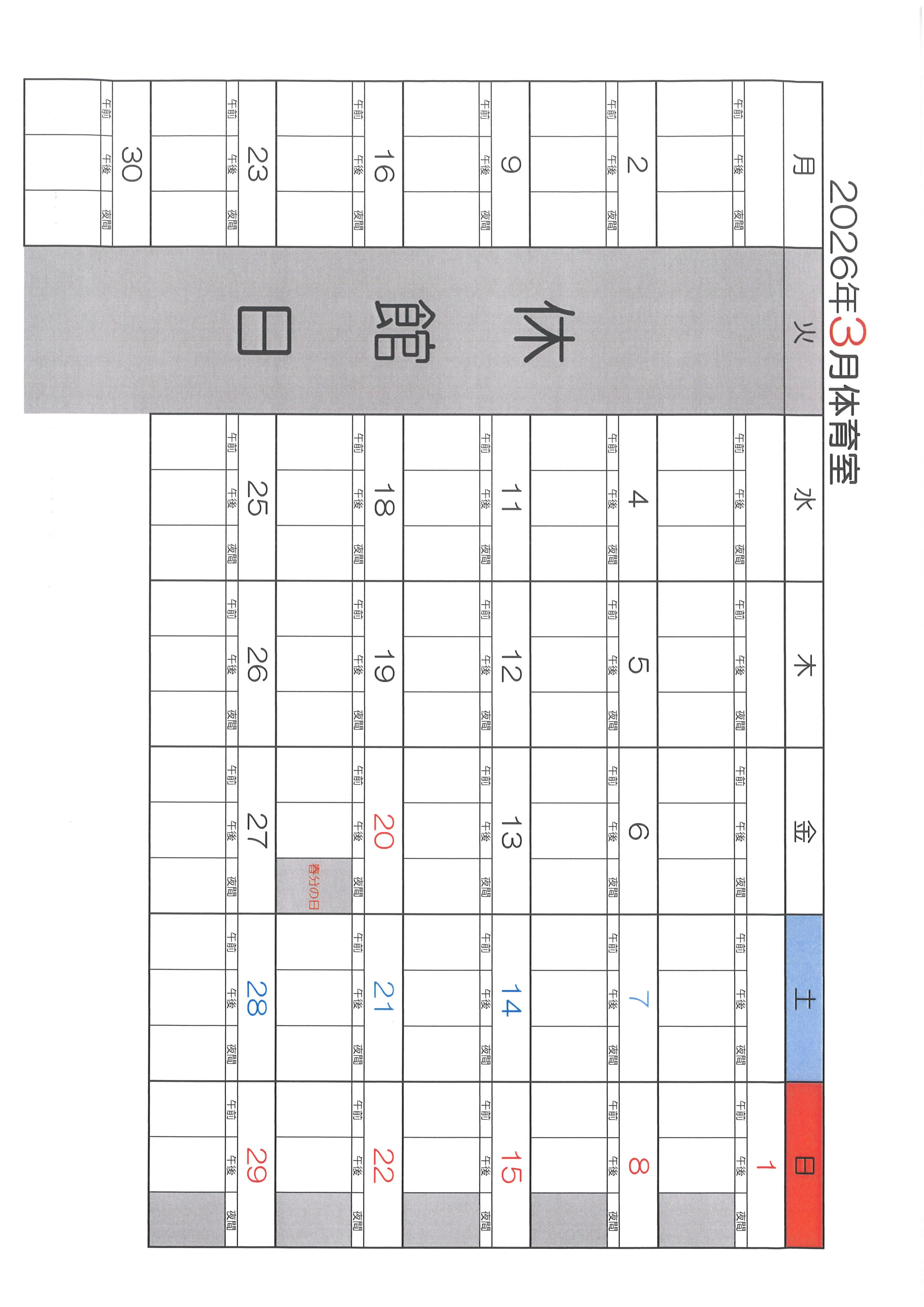 2026年6月会議室・2026年3月体育室の抽選申込カレンダーを更新しました。