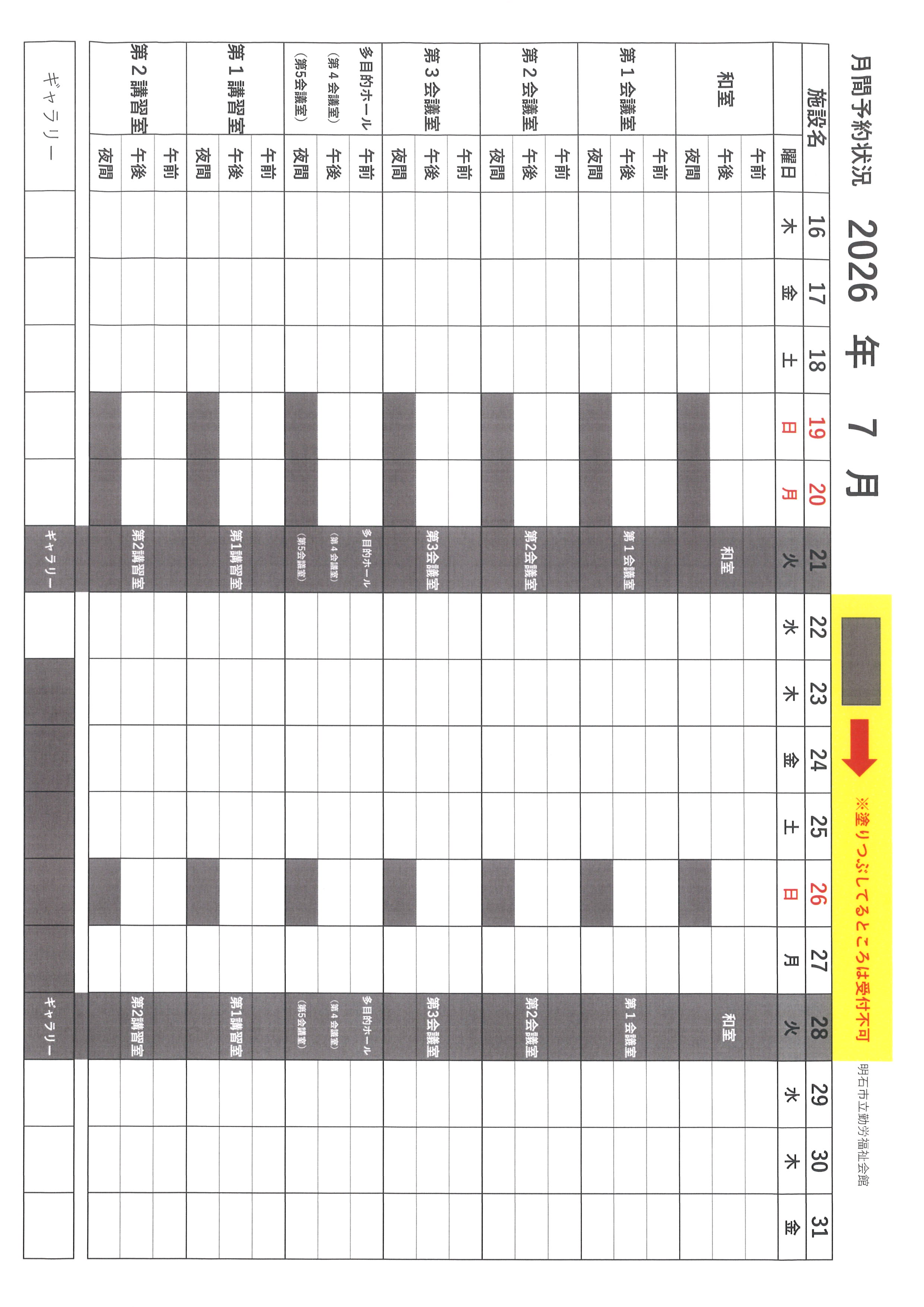 2026年7月会議室・2026年4月体育室の抽選申込カレンダーを更新しました。