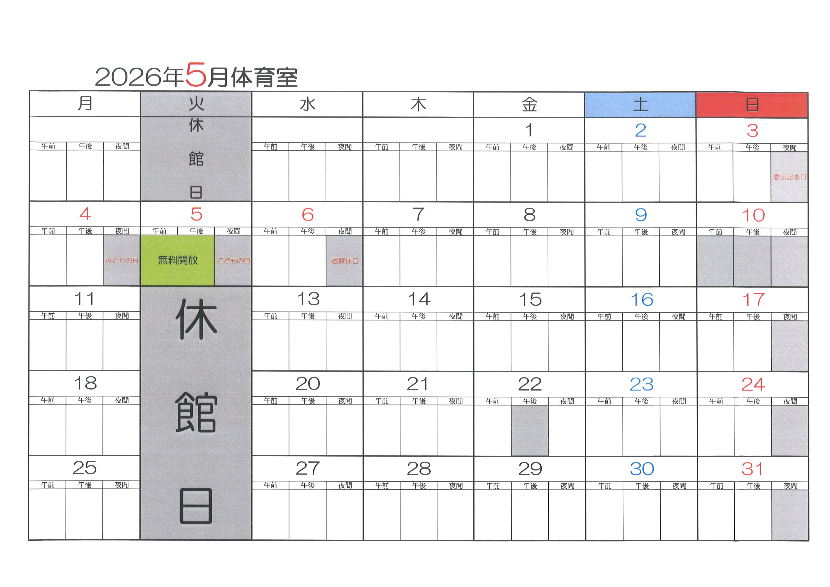 2026年8月会議室・2026年5月体育室の抽選申込カレンダーを更新しました。