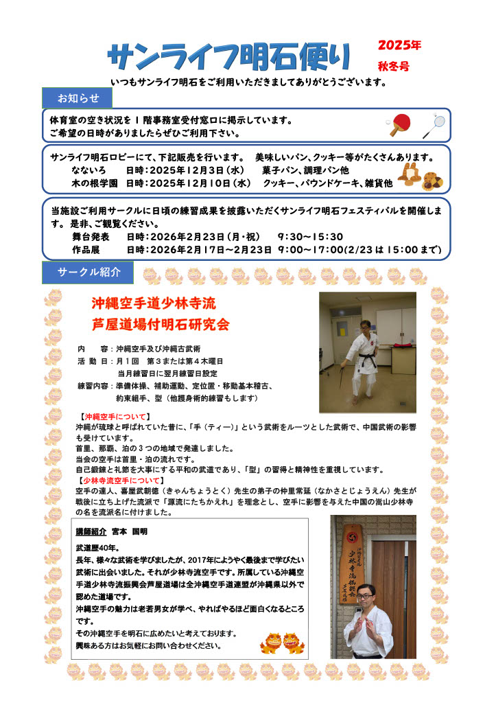【サンライフ明石】季刊誌(秋冬号)発行のご案内