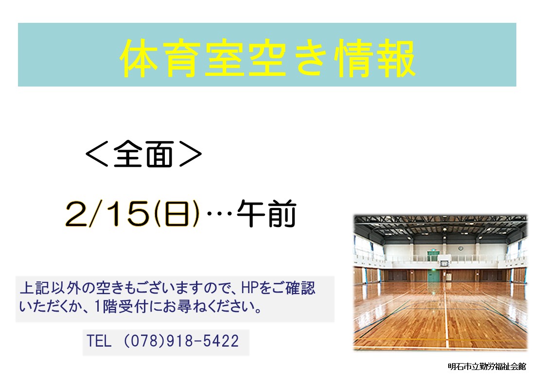 【明石市立勤労福祉会館】 2月受付 会議室・体育室抽選申込カレンダー