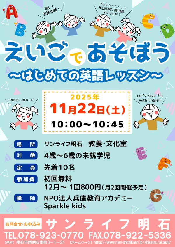 【サンライフ明石】 新講座 「えいごであそぼう」