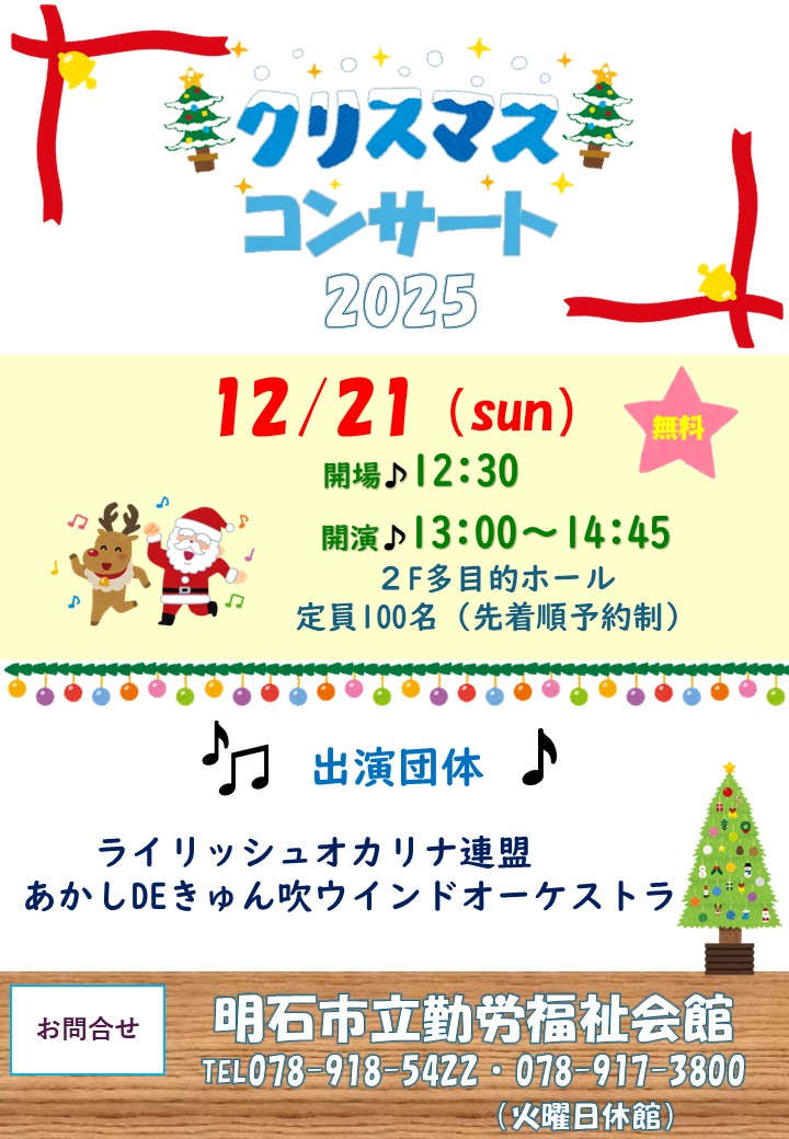 【明石市立勤労福祉会館】勤労クリスマスコンサート2025のご案内