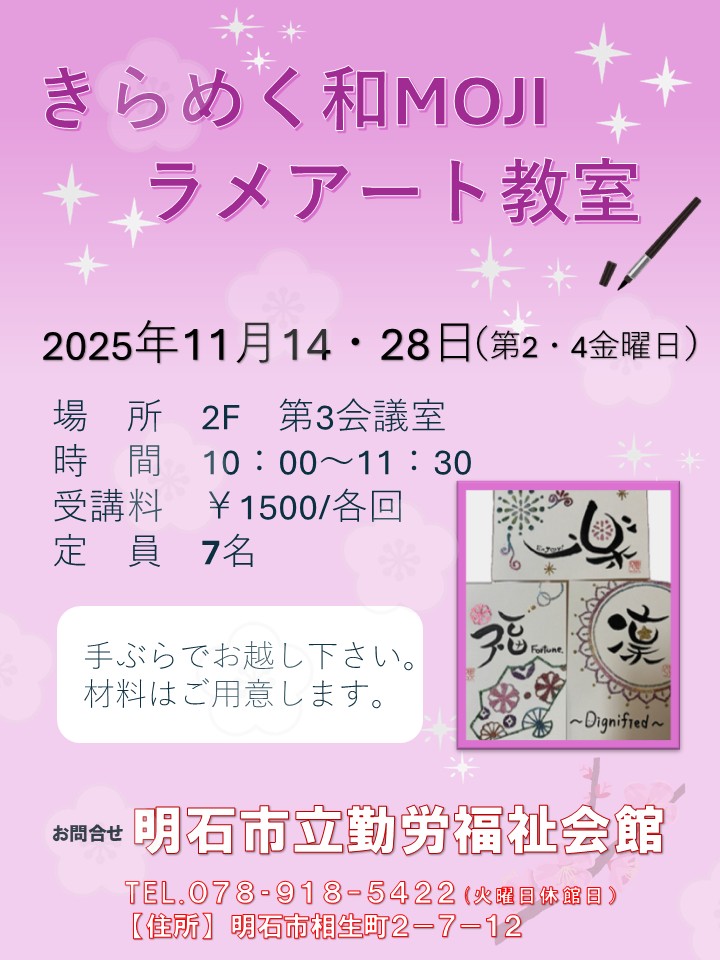 【明石市立勤労福祉会館】きらめく和MOJIラメアート教室のご案内