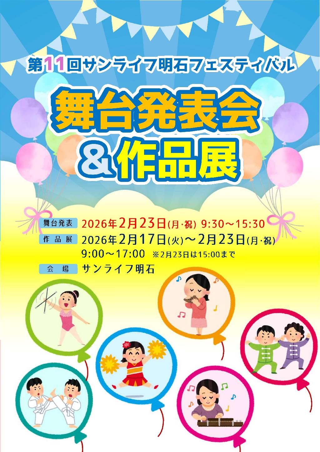 【サンライフ明石】第11回「サンライフ明石フェスティバル 舞台発表会&作品展」のご案内 -