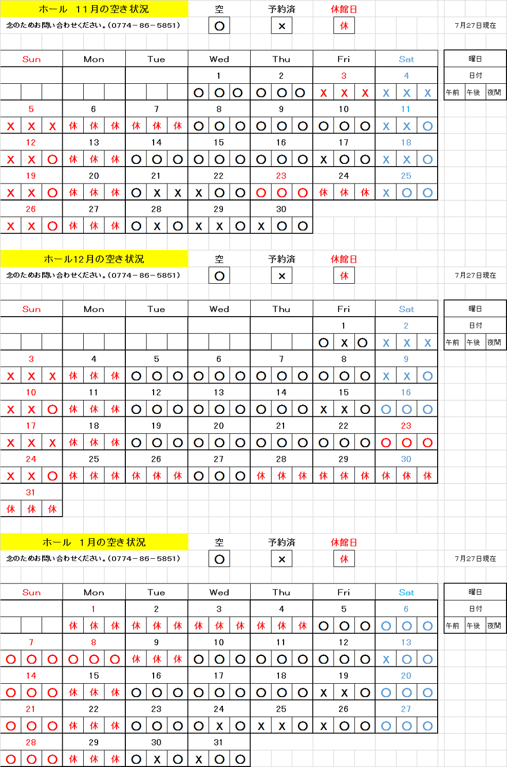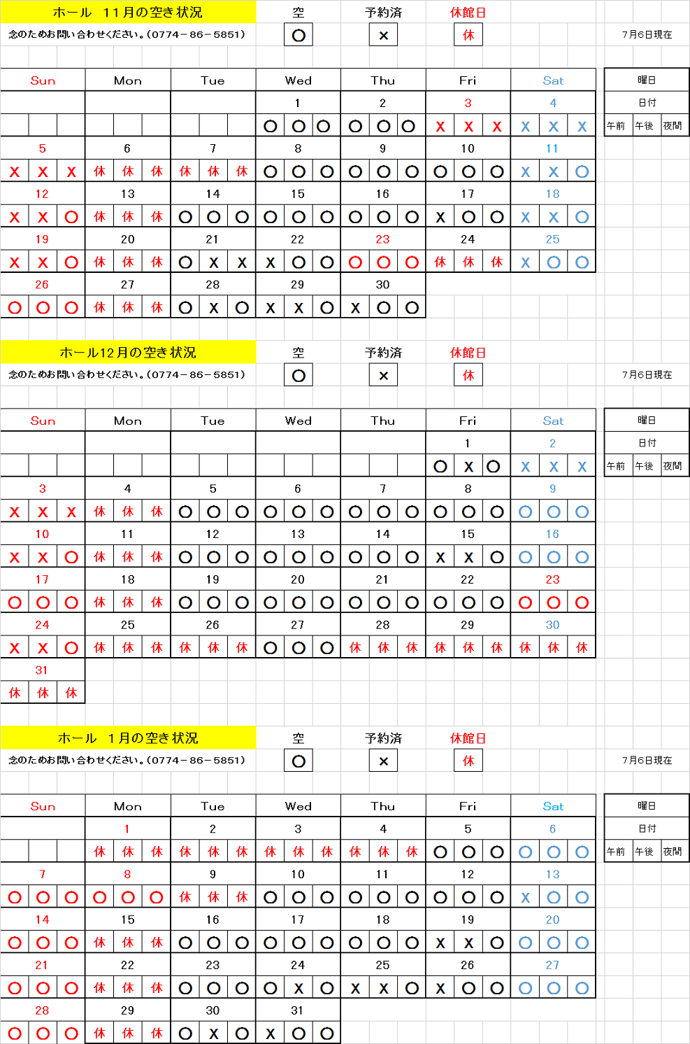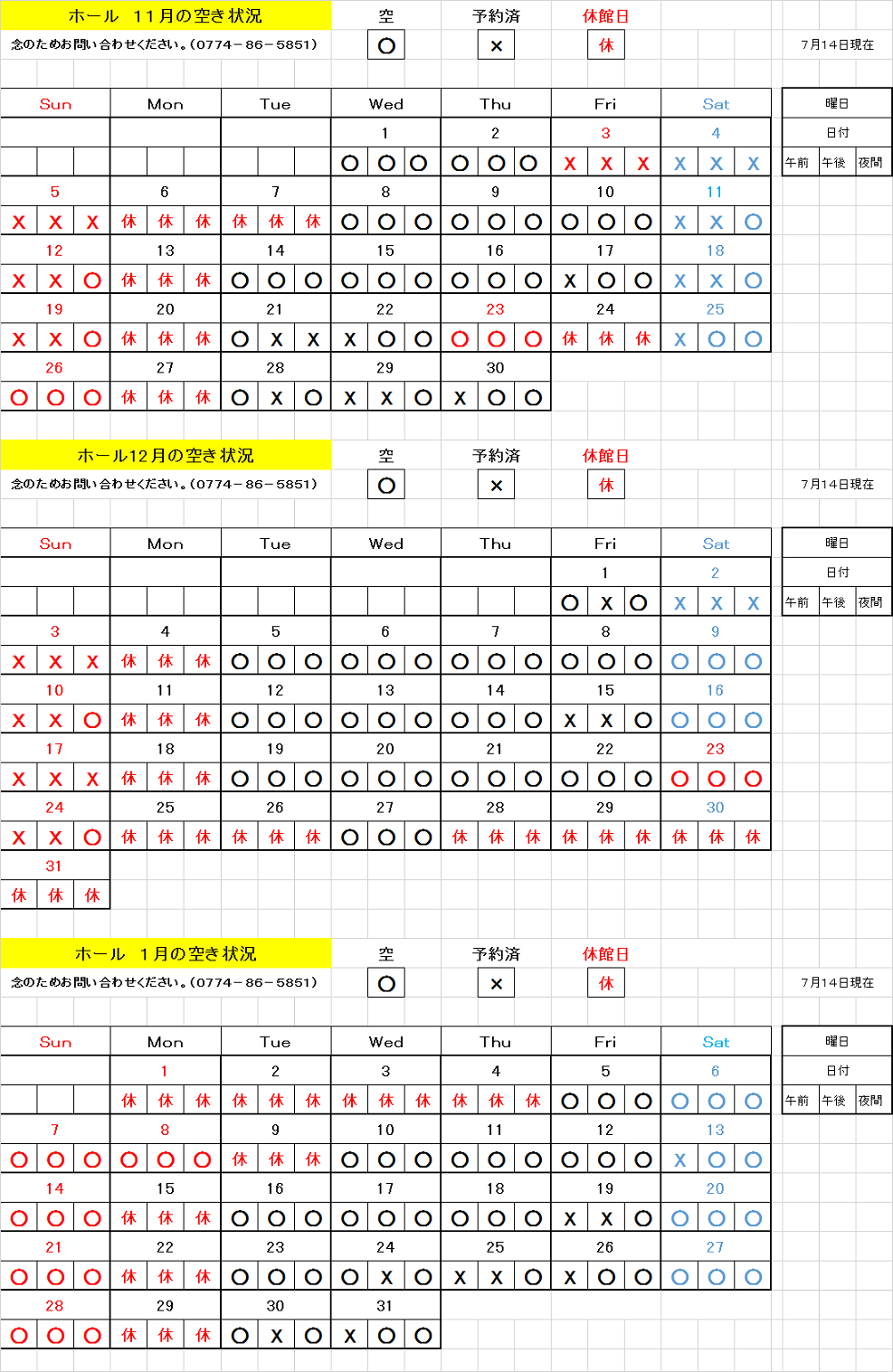グリーンホール予約状況(11月〜1月)更新のお知らせ