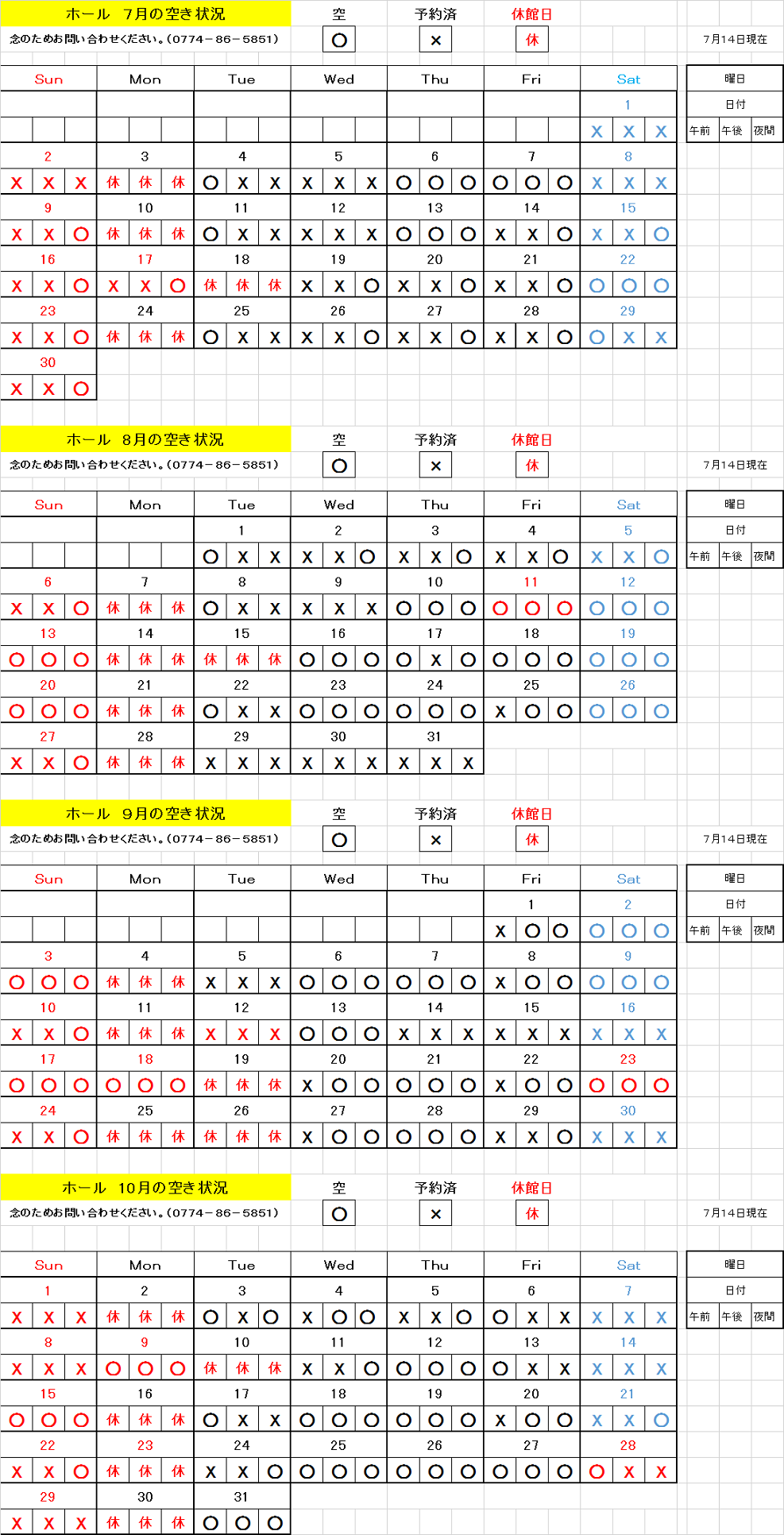 グリーンホール予約状況(7月〜10月)更新のお知らせ