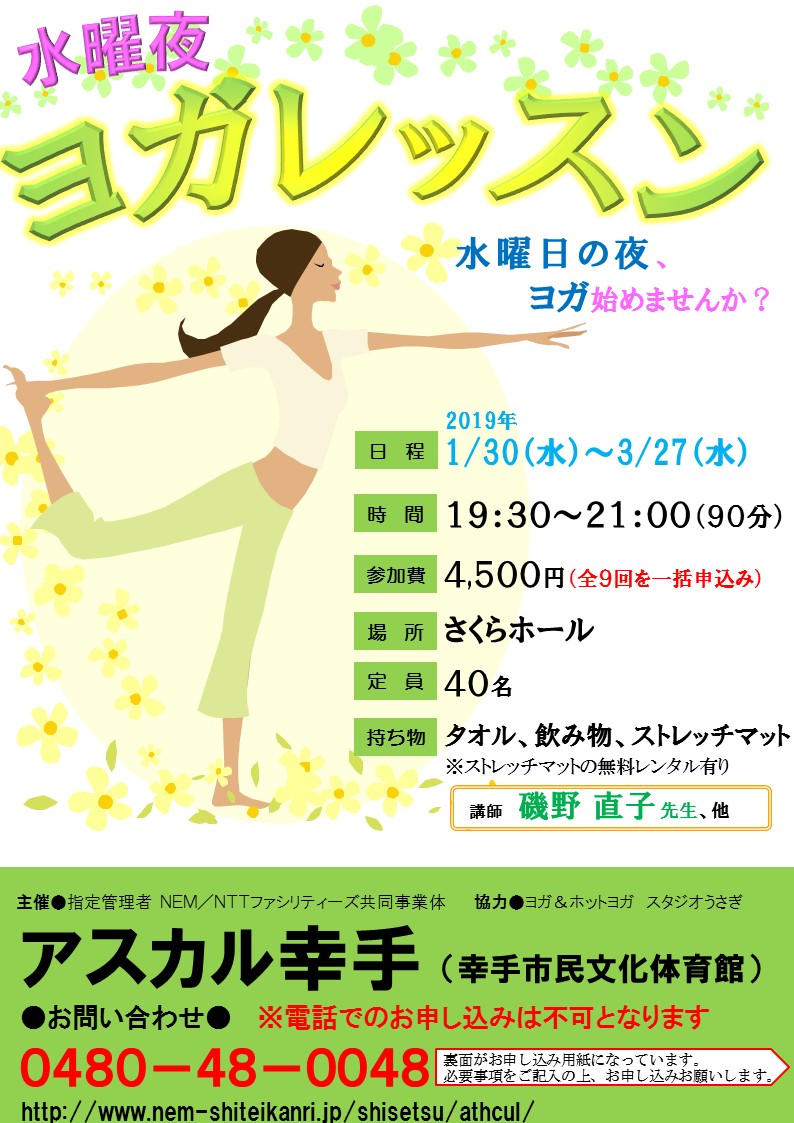 水曜ヨガ1月30日より始まります!現在、参加者募集中です!