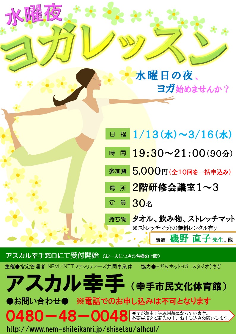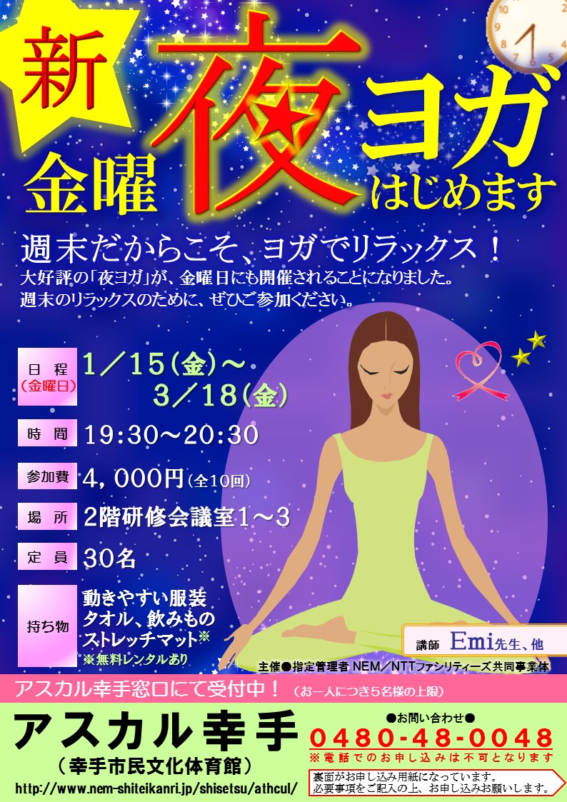 1/4(月)受付スタート!金曜夜ヨガはじめませんか