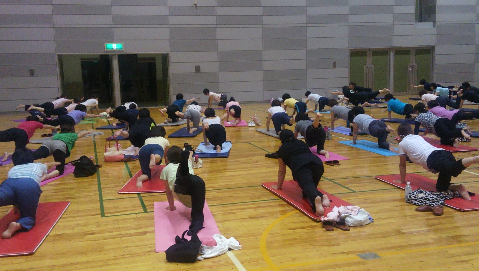 夜のヨガレッスンが今日からスタートしました。59名様ものお申込みを頂きまして本当にありがとうございました。スタッフ一同感激しております。広々とした空間でゆったりと集中して取り組んで頂きたいと会場をさくらホールに変更しスタートしました。皆様にお楽しみ頂けますよう、スタッフ一同引き続き頑張って参ります!
