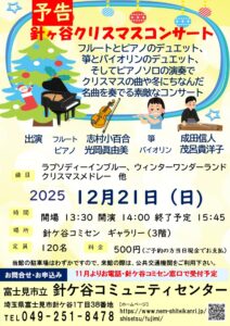 針ケ谷クリスマスコンサートが、今年も開催されます。