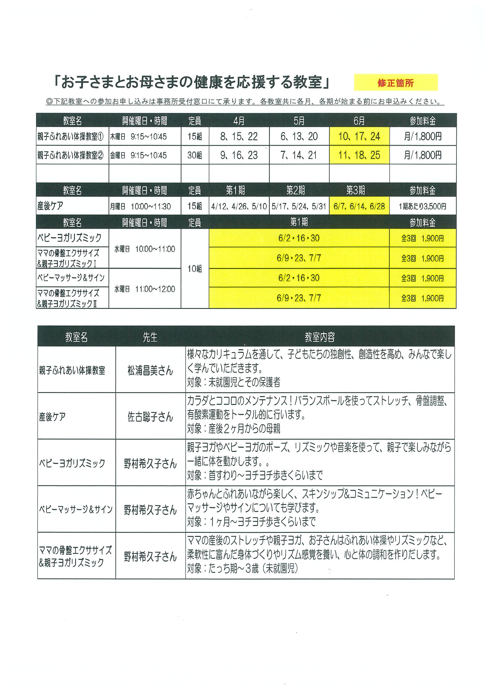 【重要】「お子さまとお母さまの健康を応援する教室」について