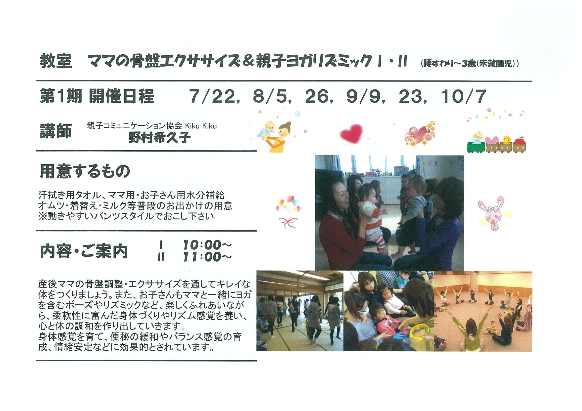 ママの骨盤エクササイズ&親子ヨガリズミック 7/22、8/5、26、9/9、23、10/7