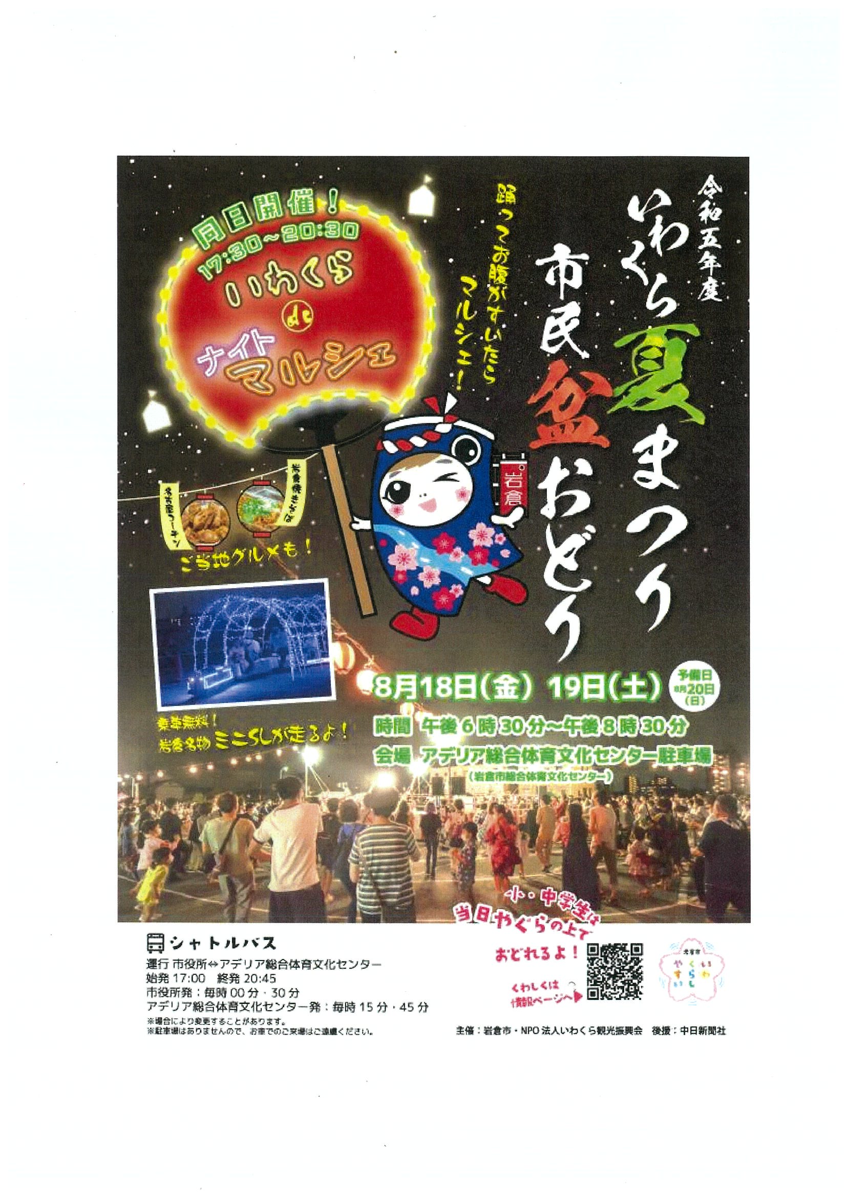 8月18j日(金)8月19日(土)「いわくら夏まつり 市民盆おどり」が開催されます。