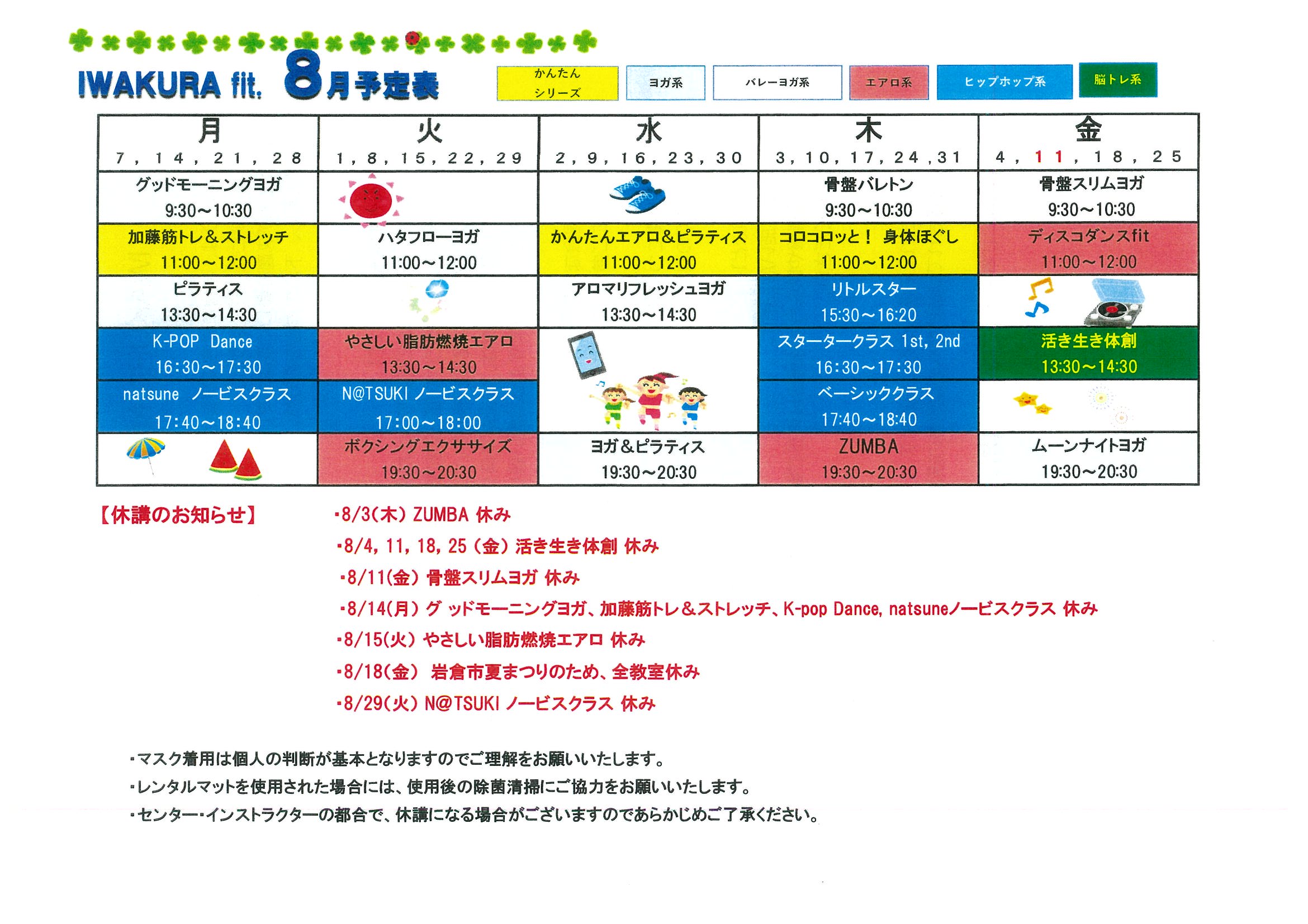 [ 詳細ファイル:8月 IWAKURA fit スケジュール ]