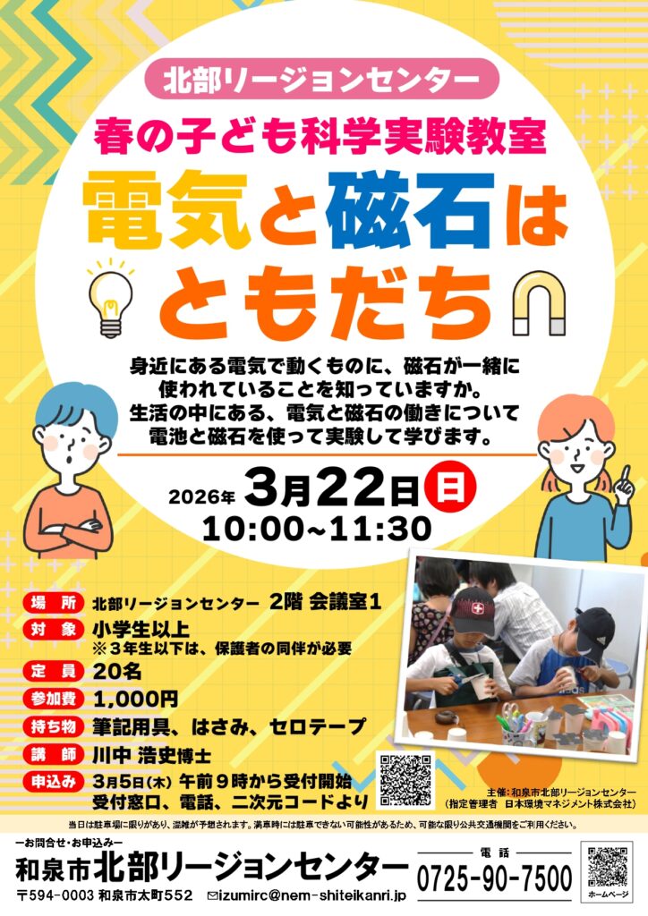 春の子ども科学実験教室 電気と磁石はともだち