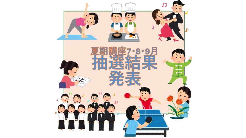 7~9月に開催される夏期講座につきまして、定員を超えた講座は抽選を行いました。結果を発表いたします。