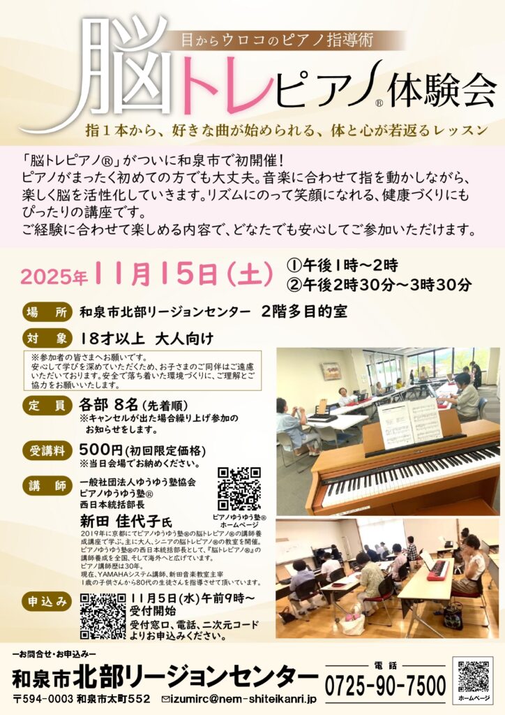 申込みと問い合わせ:℡0725-90-7500 11月5日(水)午前9時~ 受付開始