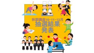 【秋期講座抽選結果とお手続きのご案内】 10~12月に開催される秋期講座につきまして、定員を超えた講座は抽選を行いました。結果を発表いたします。 参加費のお支払い及び再申し込みは、9月20日(土)10:00より9月30日 […]
