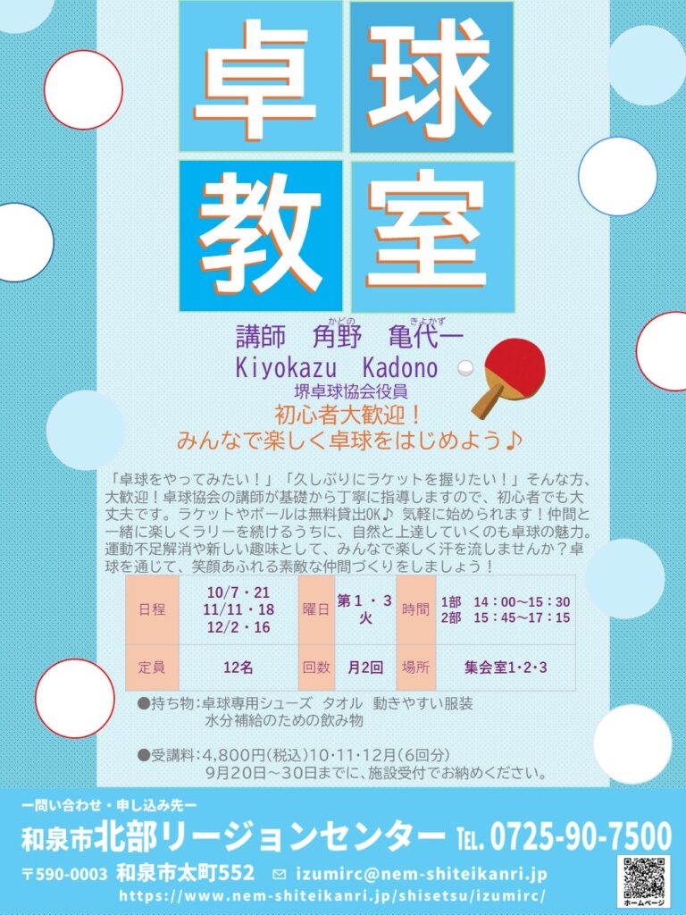 「卓球をやってみたい!」「久しぶりにラケットを握りたい!」そんな方、大歓迎!卓球協会の講師が基礎から丁寧に指導しますので、初心者でも大丈夫です。ラケットやボールは無料貸出OK♪ 気軽に始められます!仲間と一緒に楽しくラリーを続けるうちに、自然と上達していくのも卓球の魅力。運動不足解消や新しい趣味として、みんなで楽しく汗を流しませんか?卓球を通じて、笑顔あふれる素敵な仲間づくりをしましょう!