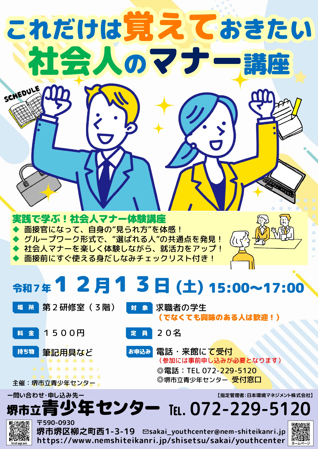 青少年センターで、新社会人の為のマナー講座を開催します🎉