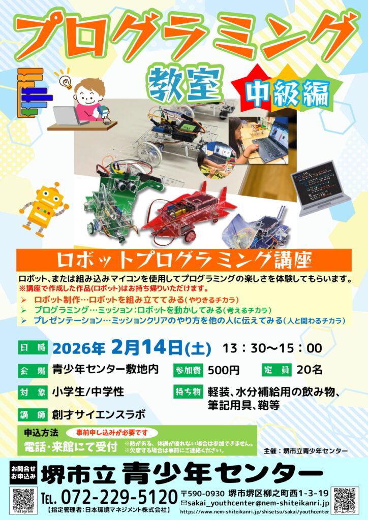 青少年センターでは、2026年2月14日(土)に