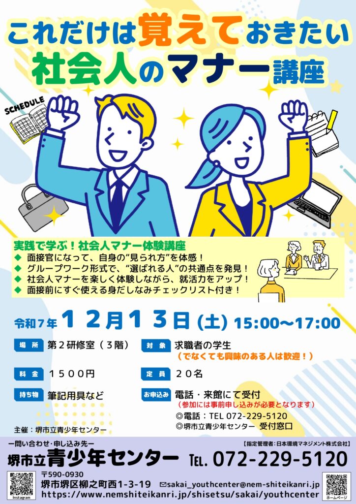 青少年センターで、新社会人の為のマナー講座を開催します🎉