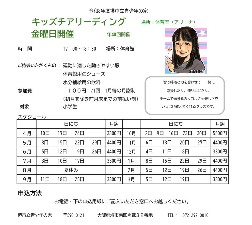 堺市立青少年の家では キッズチアリーディング教室を開催しています。