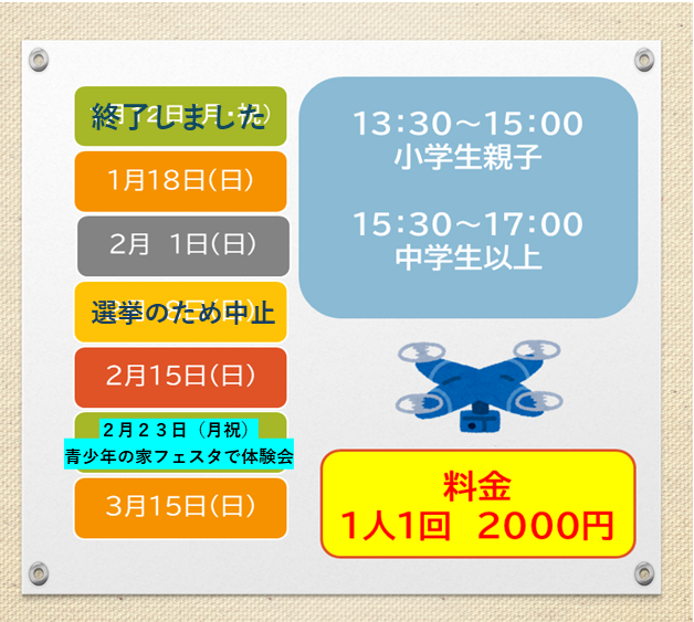 ⭐2026年1月~3月にドローン教室を5回開催いたします⭐